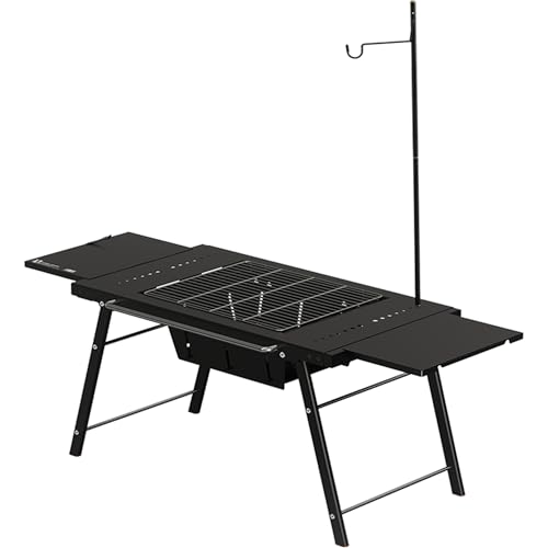 Naturehike Camping Table,Fold Up Lightweight,With Lamp Post,304 Stainless Steel,Person Portable Table with Carry Bag for Outdoor,Folding Square Table,Picnic Backyards BBQ Camp (98.7*36.5*40.5cm-Black)