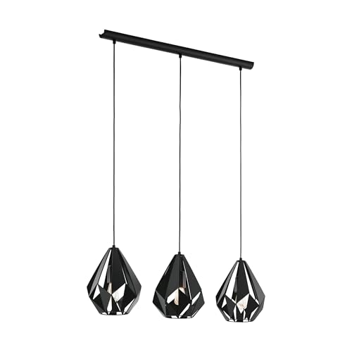 Eglo Pendant Lighting Carlton, 3-Light Vintage Hanging lamp for Dining Table, Ceiling Light Fitting Living Room, Black Metal, E27 Socket, 80.5 cm