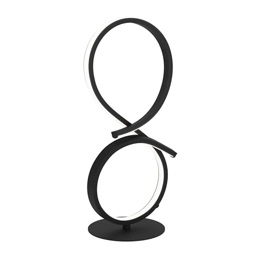 Eglo LED Bedside lamp Serpins, Curved Table lamp, Room Decoration Living Room, Bedroom Lighting Made of Metal in Black and Plastic in White, Warm White, H 40.5 cm