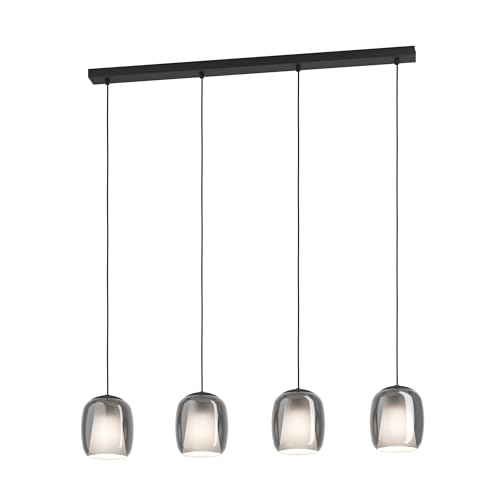 Eglo Pendant Lighting Ciampino, 4 Light Hanging lamp Above Dining Table, Elegant Dining Room Ceiling Light Fixture, Made of Metal in Black and Smoked Glass, E27 Socket, 97.5 cm