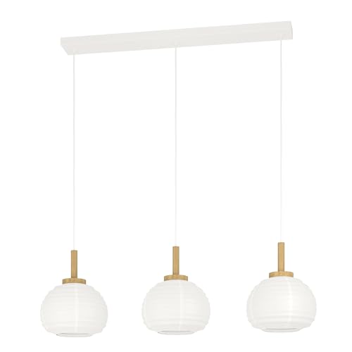 Eglo Pendant Lamp Summerhill, 3-Light Hanging Lamp for Dining Table, Japanese Style Dining Room Light, Metal, Wood and Paper in White, FSC Certified, E27 Socket, 92.5 cm
