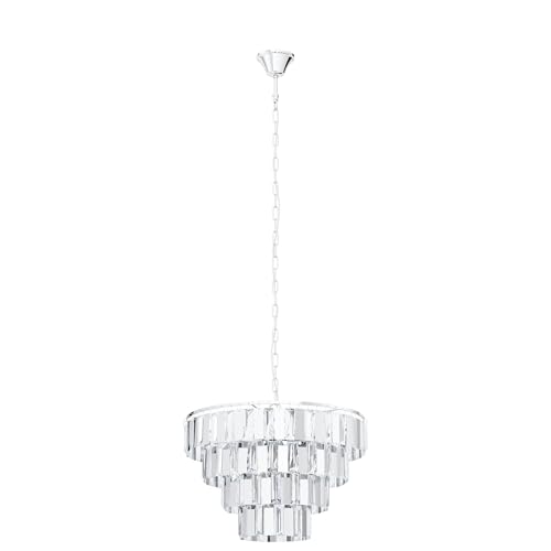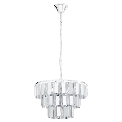 EGLO Erseka Pendant Light, 5-Bulb Modern, Elegant, Pendant Light Made of Steel in Chrome and Crystal in Clear Dining Table Lamp, Living Room Lamp Hanging with E14 Socket, Diameter 38.5 cm