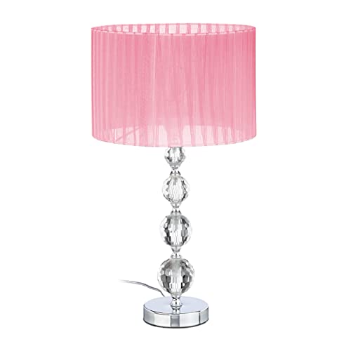 Relaxdays Table Lamp, Bedside Lamp in Crystal Design, H x D: 54 x 29.5 cm, E27 Socket, Table Lamp with Shade, Pink