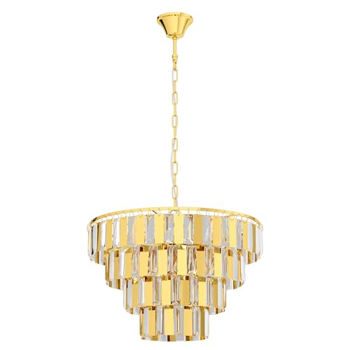 EGLO Erseka Pendant Light, 7-Bulb Modern, Elegant, Pendant Light Made of Steel in Brass and Crystal in Clear Dining Table Lamp, Living Room Lamp Hanging with E14 Socket, Diameter 48.5 cm