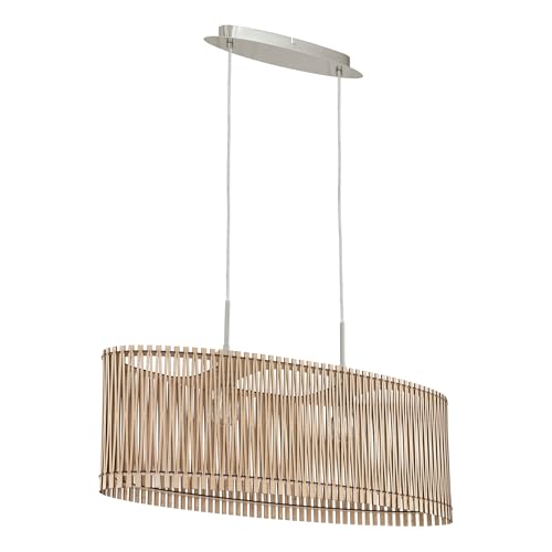 EGLO Sendero Pendant Light, 2-Bulb Vintage, Modern, Natural, Boho, Pendant Light Made of Steel in Matte Nickel, Wood in Maple, Dining Table Lamp, Living Room Lamp Hanging with E27 Socket, L 77.5 cm
