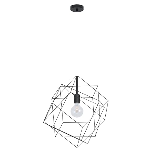 EGLO Straiton Pendant Light, 1-Bulb Pendant Lamp, Vintage, Industrial, Steel Pendant Light in Black, Dining Table Lamp, Living Room Lamp, Hanging with E27 Socket, Diameter 51.5 cm