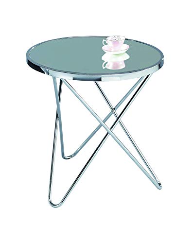 ASPECT Porto Round Glass Side Coffee End Lamp Table, Metal, Chrome/Mirror, 55 Dia x57.5 cm