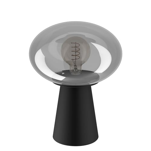 Eglo Table Lamp Madonnina, Bedside Lamp with Glass Globe, Decorative Table Light for Bedroom and Living Room, Metal in Black and Glass in Grey-Transparent, E27 Socket, 32.5 cm
