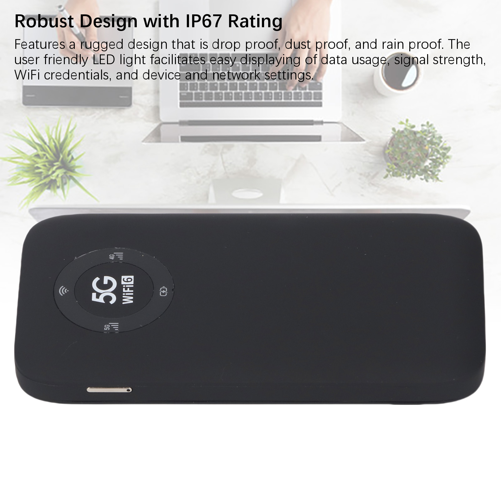 5G Mobile Hotspot, 6100mAh Battery, Dual Band WiFi6 Portable Router with SIM Card Slot Support 16 Devices, IP67 Rated Design, WiFi6 High Capacity Battery Hotspot