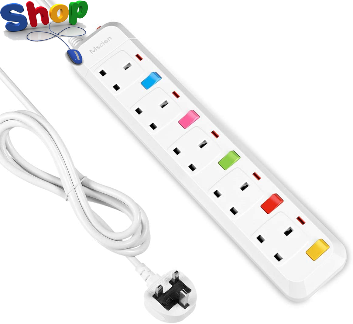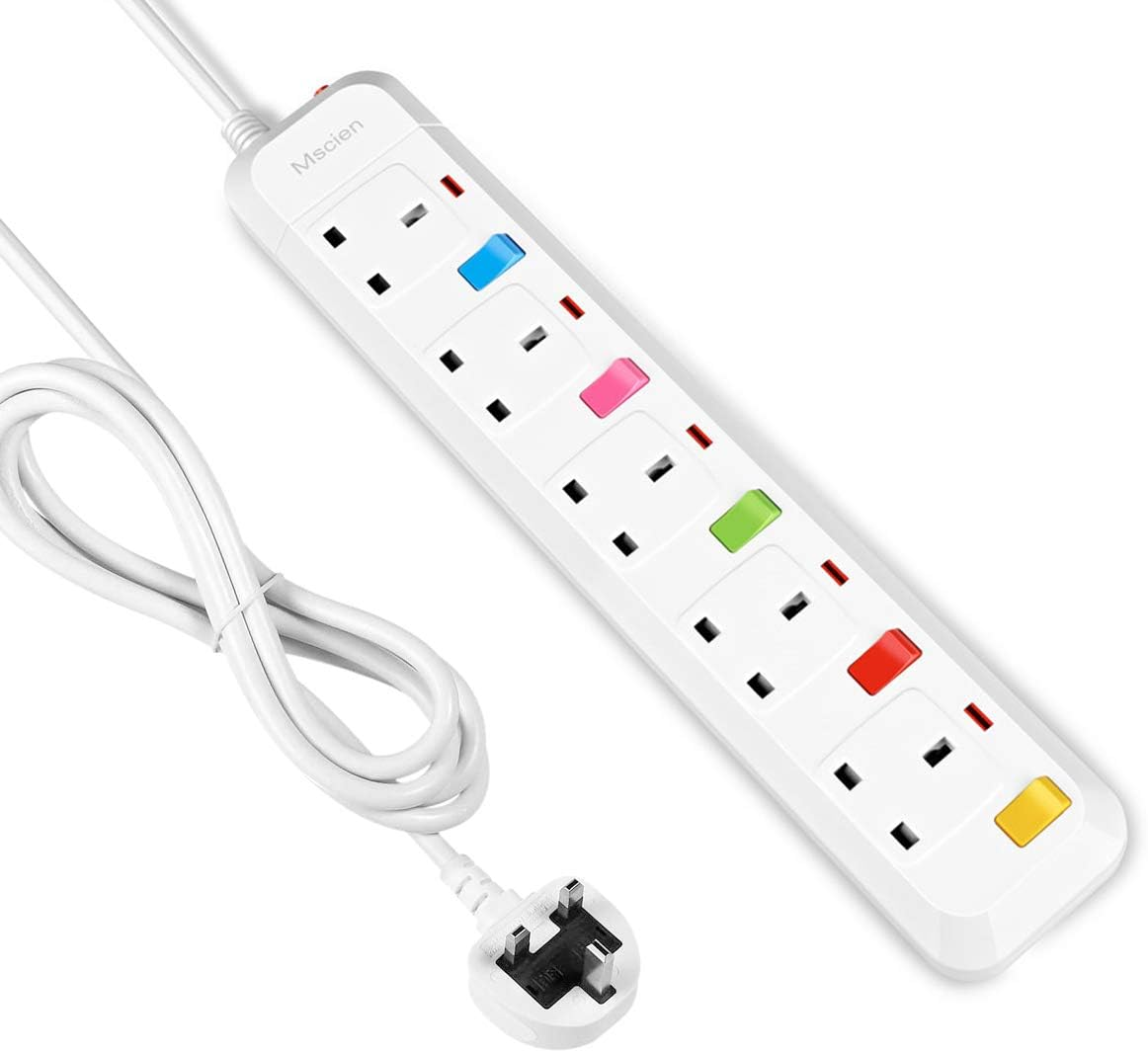 5M Extension Lead 5 Way Individually Switched,Mscien Surge Protected Extension