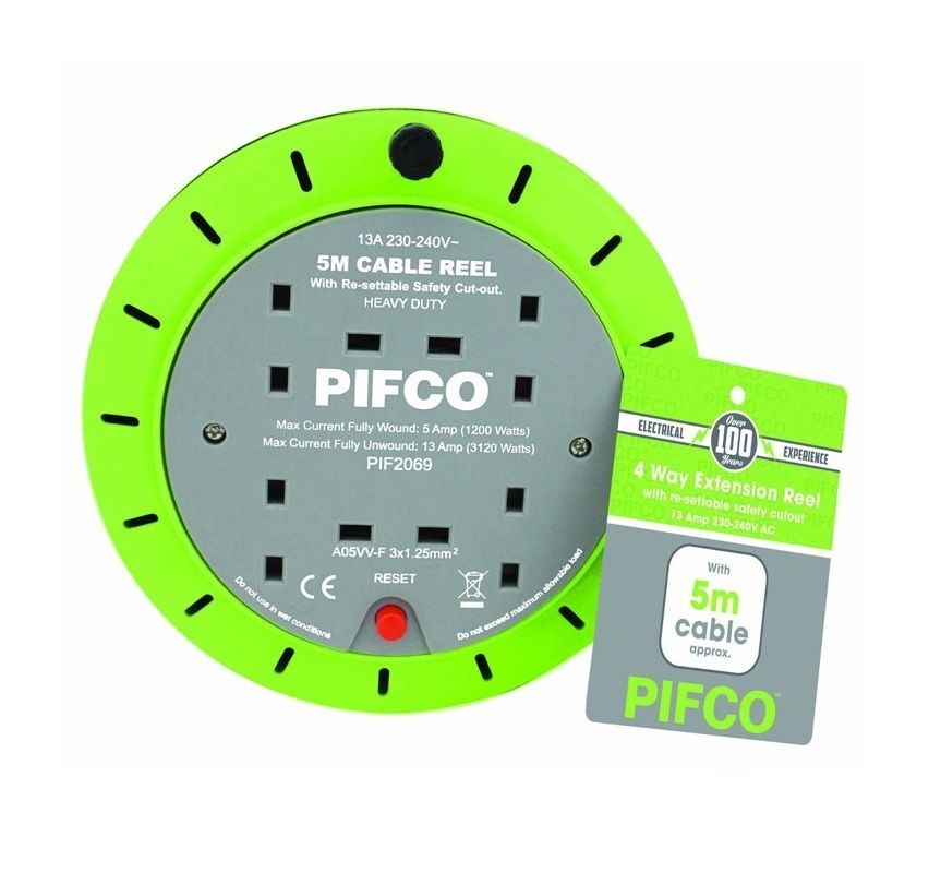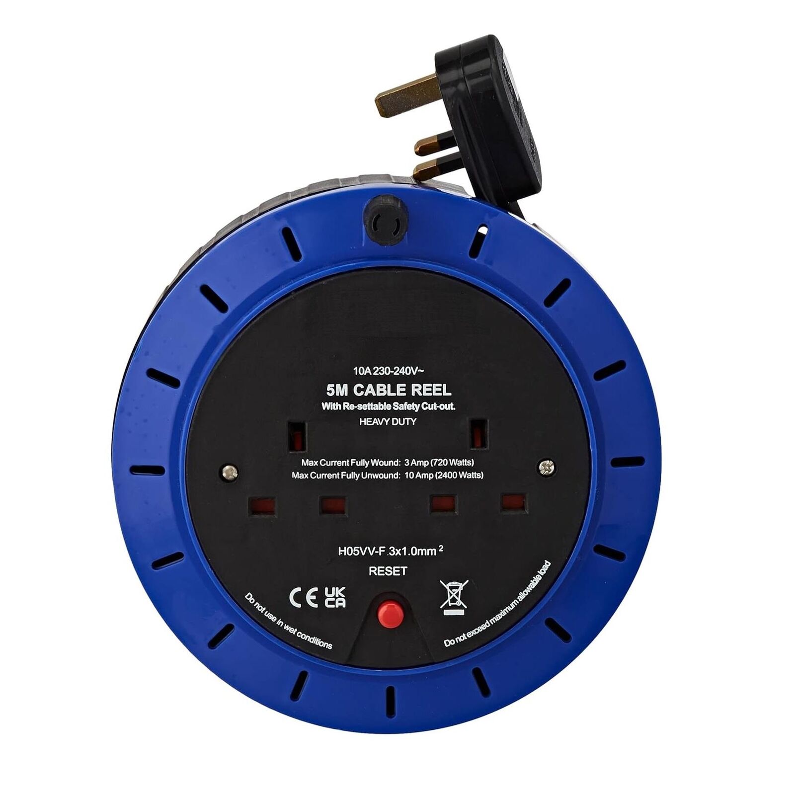 4 Way Socket 5m Cable Extension Lead Reel Indoor-Outdoor Heavy Duty Socket Reel