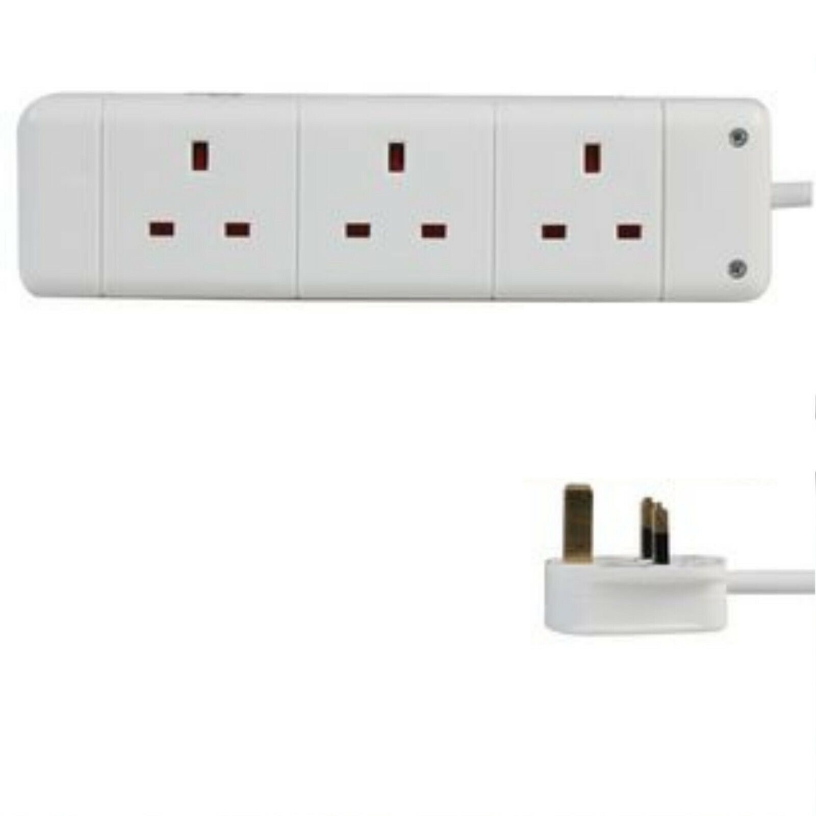3 Gang 5M Extension Lead Socket Metre Mains Lead Cable White 13A 3G 5 Metre