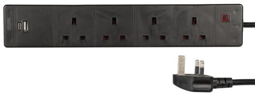 5M Extension Lead with 4 USB Slots, 4 Way (13A/3250W) Multi Plug Extension Cable, UK Desktop Power Extension Cord with Multi Socket, Extension Cable (Black)