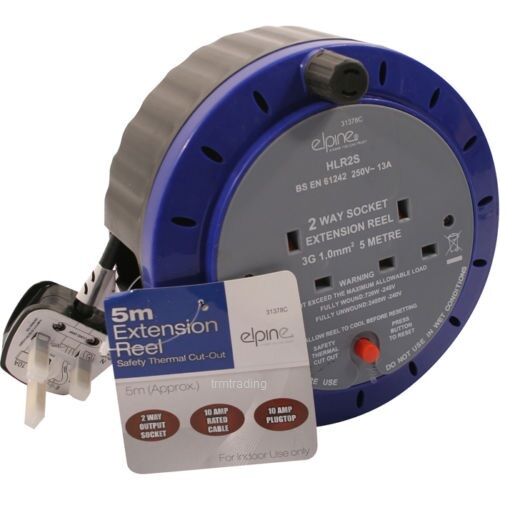 5m Extension Lead Reel 2 Way Socket 13A Thermal Cut-Out Cable Reel