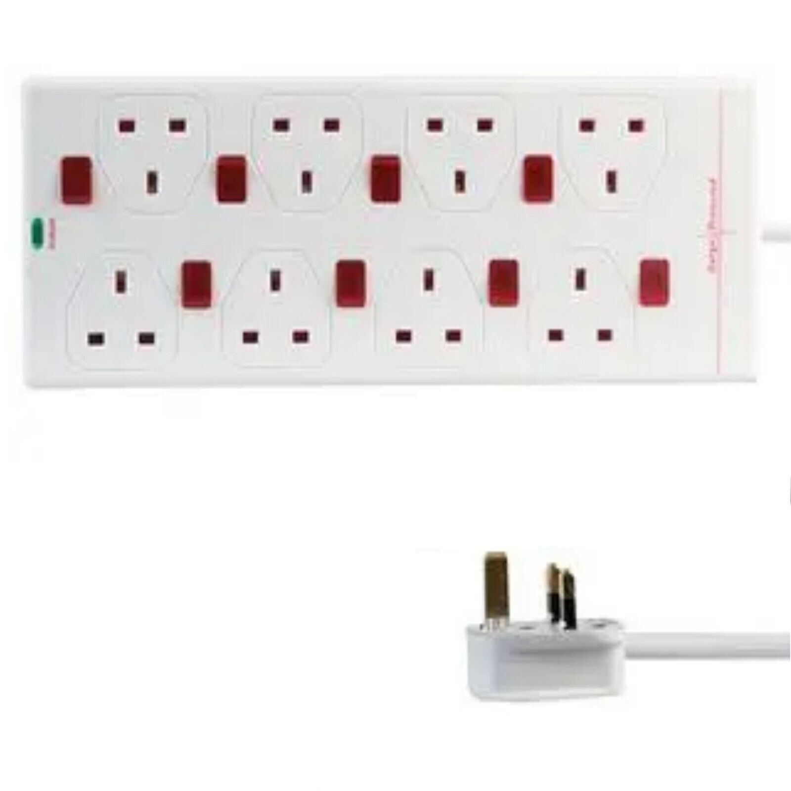 5m Extension Lead Switched NEON 8 Gang 5 Metre CABLE 8G 13A surge protected