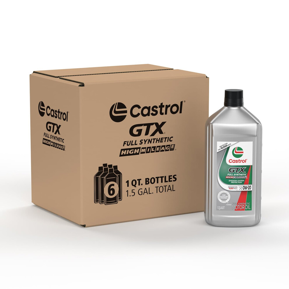 Castrol GTX Full Synthetic High Mileage 0W-20 Motor Oil 1 Quart Pack of 6