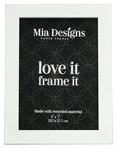 Mia Designs Picture Frame White with Silver Lines 5x7 13x18 Cm Photo Frame for Desk, Wall and Table Top in Eco-friendly PS material Environmentally Friendly Freestanding Frame