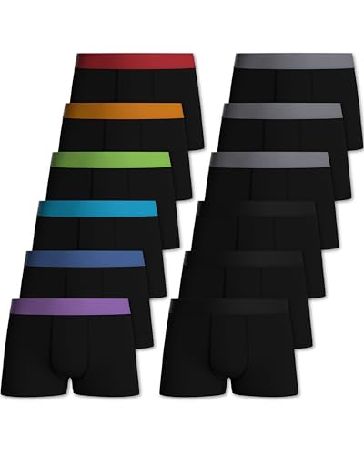 Boys Classic Boxer Shorts 6 and 12 Pack Combed Cotton Blend Designer Trunk Boxers Underwear 5 yrs - 13 yrs (13 yr, 6 Pack Black Colour with Neon Ban)