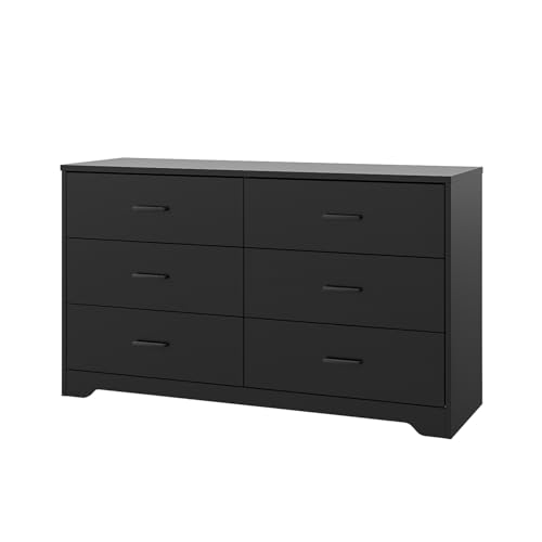WHATSIZE ENTERPRISE Large Chest of Drawers for Bedroom, 6 Drawer Black Dresser with Metal Runners, Bedroom Furniture Storage Cabinet for Clothes, Contemporary Design, Easy Assembly