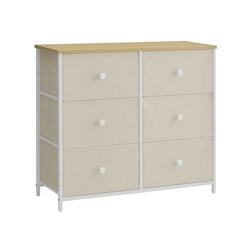 SONGMICS Chest of Drawers, 6 Fabric Drawers with Metal Frame, Storage Organiser Unit, Dresser, for Nursery, Bedroom, Hallway, White and Oak LTS323W57
