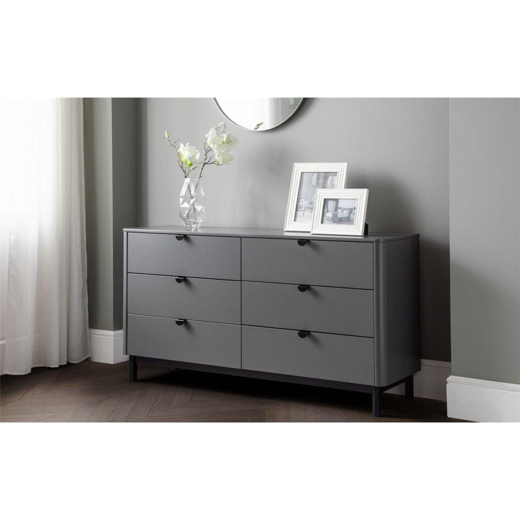 Retro Anthracite Wide Chest (6 Drawers)