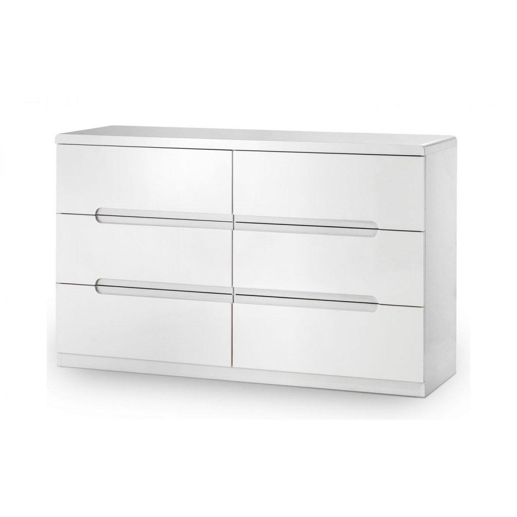 White High Gloss 6 Drawers Wide Chest