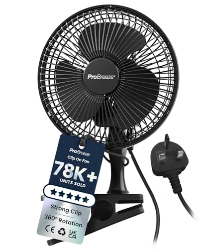 Pro Breeze 6 Inch Clip on Fan with 2 Speeds, Mains Powered, 360° Rotation, Silent Desktop Fan with Strong Airflow - Mini Plug in Silent Desk Fan, Ideal Electric Air Circulator for Bed, Cot & Desk top
