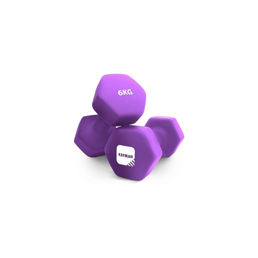 KAYMAN Neoprene Dumbbells Pair with Anti-Slip Grip,Hex Edges,Water-Resistant Surface & Workout Poster-Weight Set for Home, Gym & Fitness (1kg 2kg 3kg 4kg 5kg 6kg 8kg 10kg) (2 x 6 Kg)