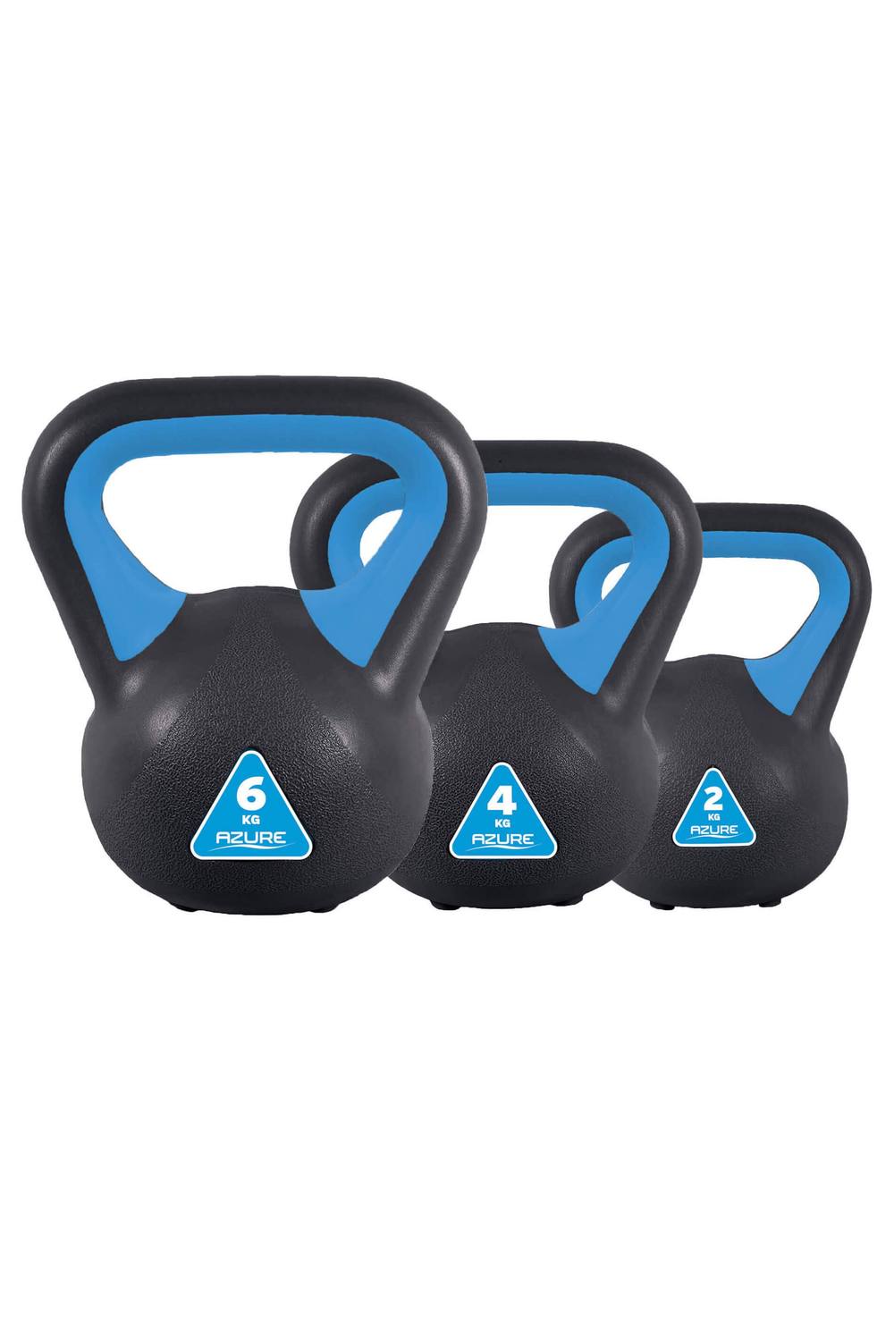 Azure 2, 4 & 6kg Vinyl Kettlebell Weight Set in Blue