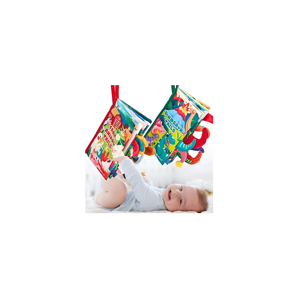 hahaland Baby Books 0-6 Months, 2PCS Baby Toys 0-6 Months Touch & Feel Tummy Time Books, Sensory Stroller Toys 0 3 4 6 Month Old Toys