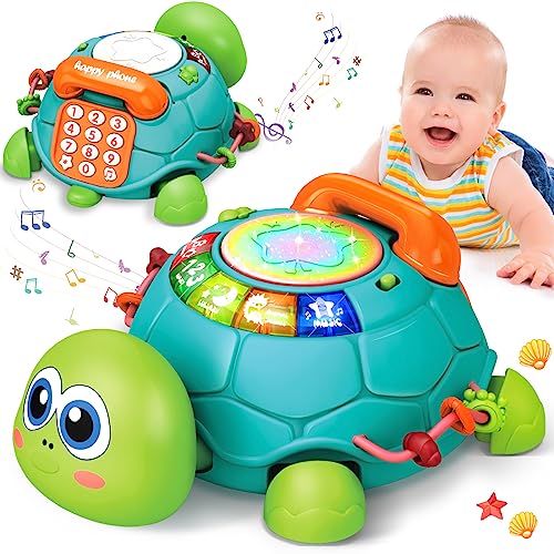 Baby Toys 6 to 12 Month Crawling Turtle Sensory Toys for 1 Year Old Babies Toddler kids Infant Girls Boys Musical Phone Learning Educational Lights/Music/Number Letter Christmas 1st Birthday Toy Gift