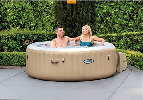Intex PureSpa Bubble 4 Person Inflatable Hot Tub Spa - 120 Heated Bubble Jets, 2200W Heater, Hard Water System, Energy Efficient Cover, Round Garden Spa, 196cm