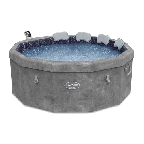 Lay-Z-Spa Carrara, 140 AirJet Massage System, Foam Wall Hot Tub, 60% More Energy Efficient, Built-In Pump, Wifi Control, Includes Padded Pillows, 4-6 Person