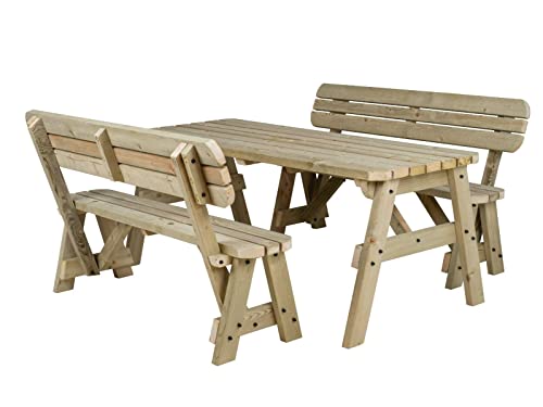 Arbor Garden Solutions 6 Seat Wooden picnic table and benches with backrest, Alders patio furniture set (5ft, Natural (light green))