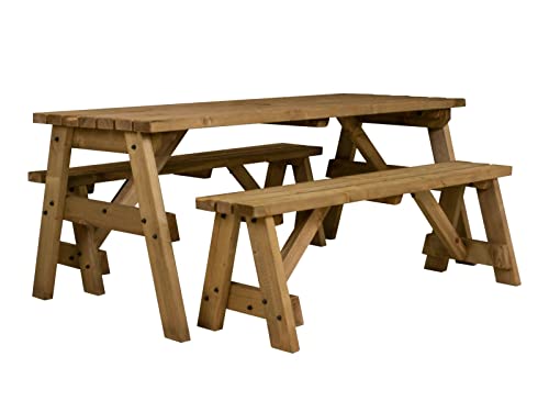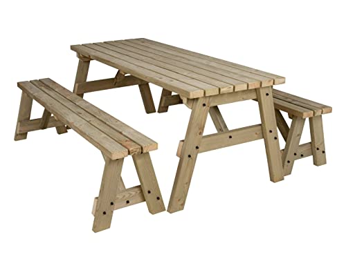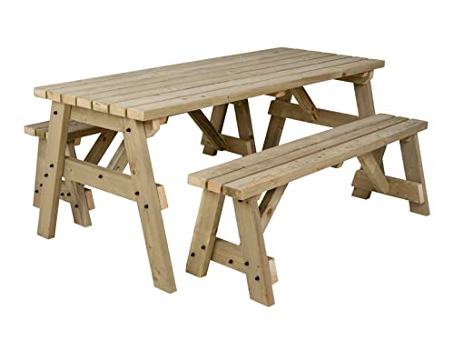 Arbor Garden Solutions 6 Seat Wooden picnic table and benches set, Victoria patio furniture (5ft, Light Green (Natural))
