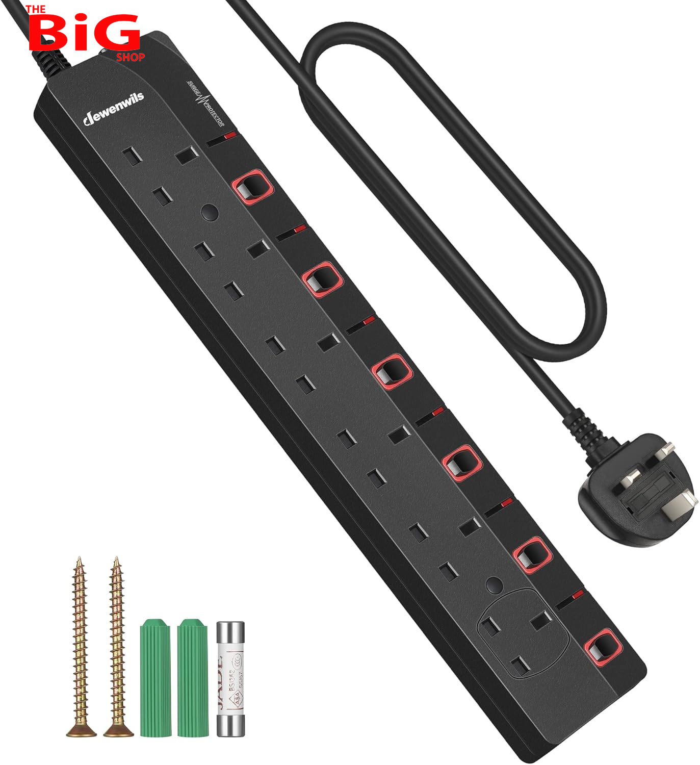 6 Way Surge Protected Extension Lead with Individual Switches and Indicator Ligh