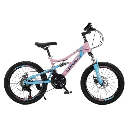 7 Speed Kids Bike, Pink Girls Mountain Bike, 18” 20" Road Bike, Sport Bicycle, Girls Cycle, Double Front and Rear Suspension, 7 Gears, Dual Disc Break, Tool Kit, 6 to 12 Year Old (20 Inch)