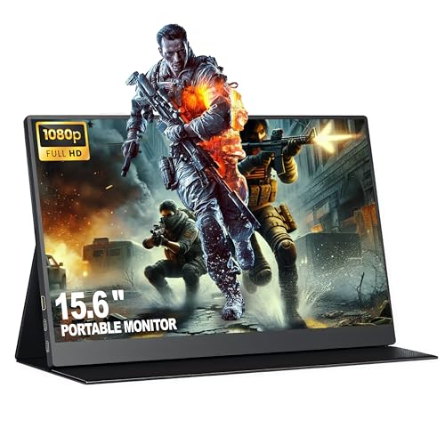 Portable Monitor 15.6 Inch 1080P, Adjustable Kickstand, HDMI External Screen, Lightweight Slim Design, 300-400 nits Brightness, 60Hz Refresh Rate, 100% sRGB, Built-in Speakers