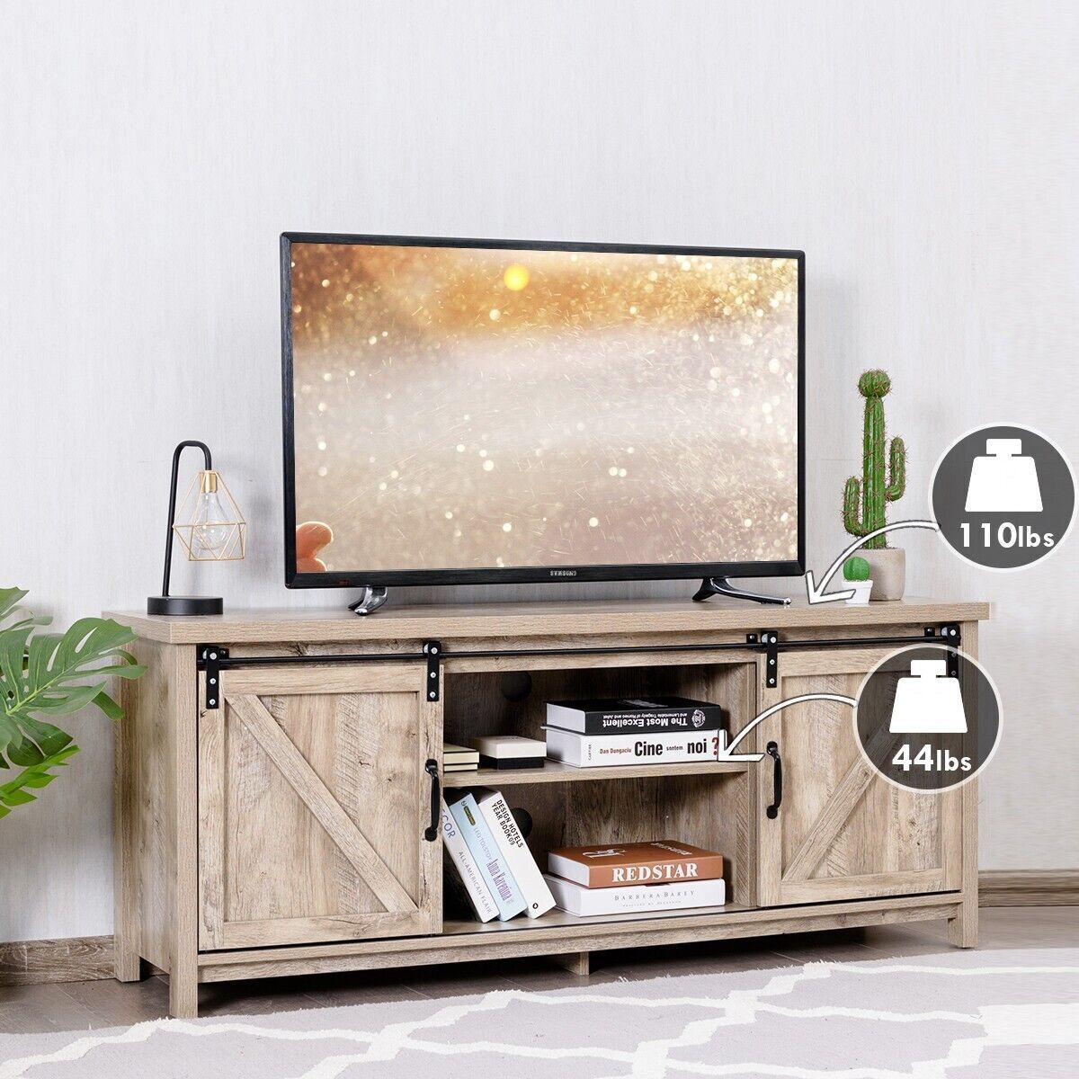 Modern TV Cabinet for 60-Inch TV Wooden Media Storage Shelves Organizer Stand