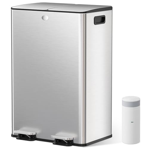 Panana 60L Dual Trash Can Kitchen Waste Rubbish Garbage, Dual Step Garbage Can & Recycle Bin with 2 Removable Inner Buckets (Grey, 60L)