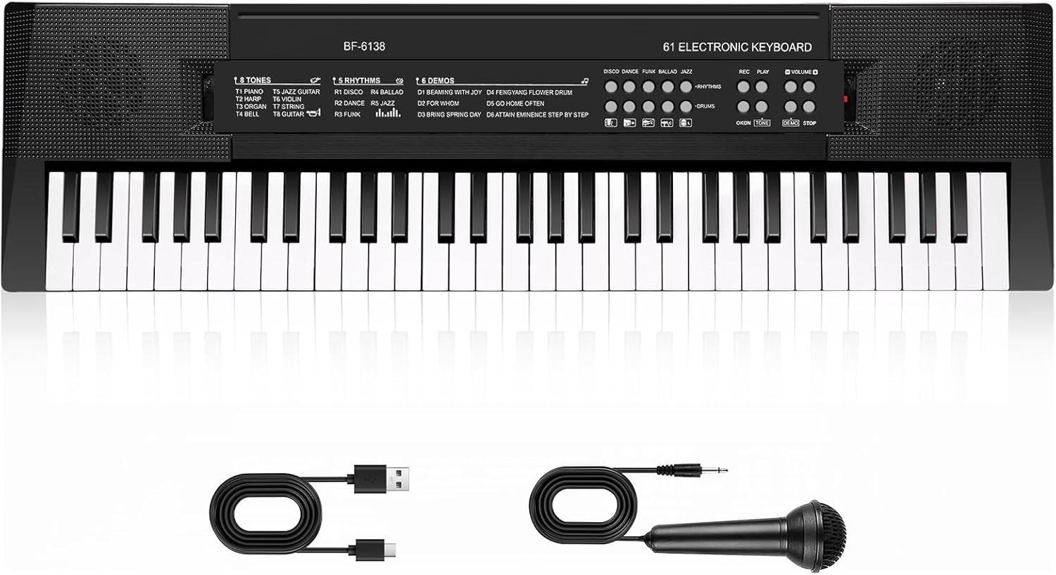 61-Key Keyboard Piano for Kids, Music Keyboard with Microphone, Portable Electronic Teaching Piano Toy Gift for Beginners Boys Girls Ages 3-12, Built-In Speakers and Many Premium Voices