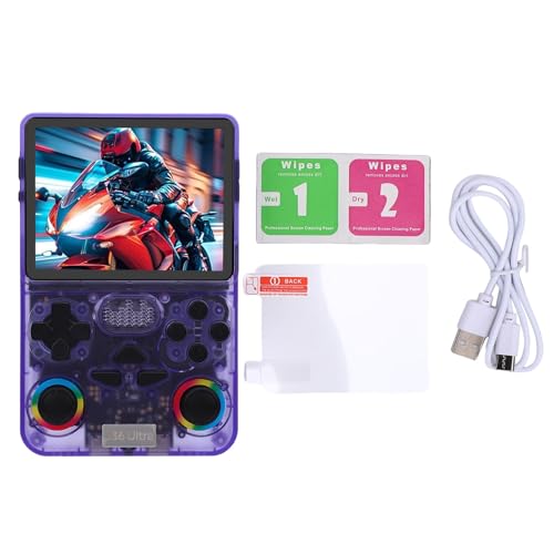 UUNPODDO Retro Handheld Game Console, 3.5inch HD Screen 640x480 Resolution, Dual Joystick Handheld Game Player with 3500mAh Battery, Includes 64G Memory Card for Leisure Entertainment (Purple)