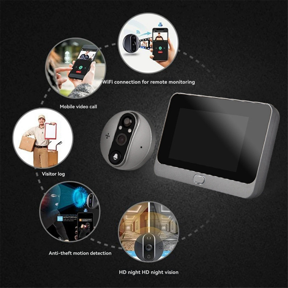 Tuya Wifi Smart Doorbell Monitoring 3MP Camera 140 Wide Angle Electronic Observer with 64G Memory Card