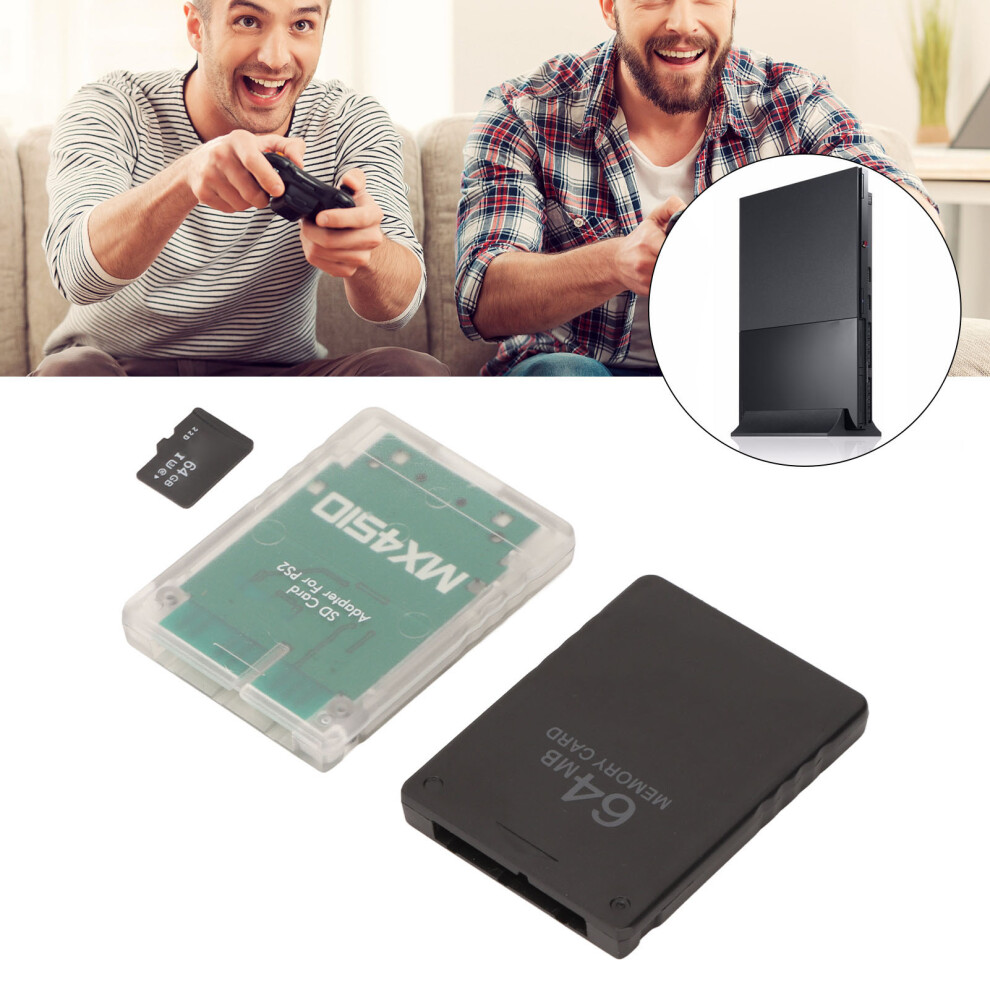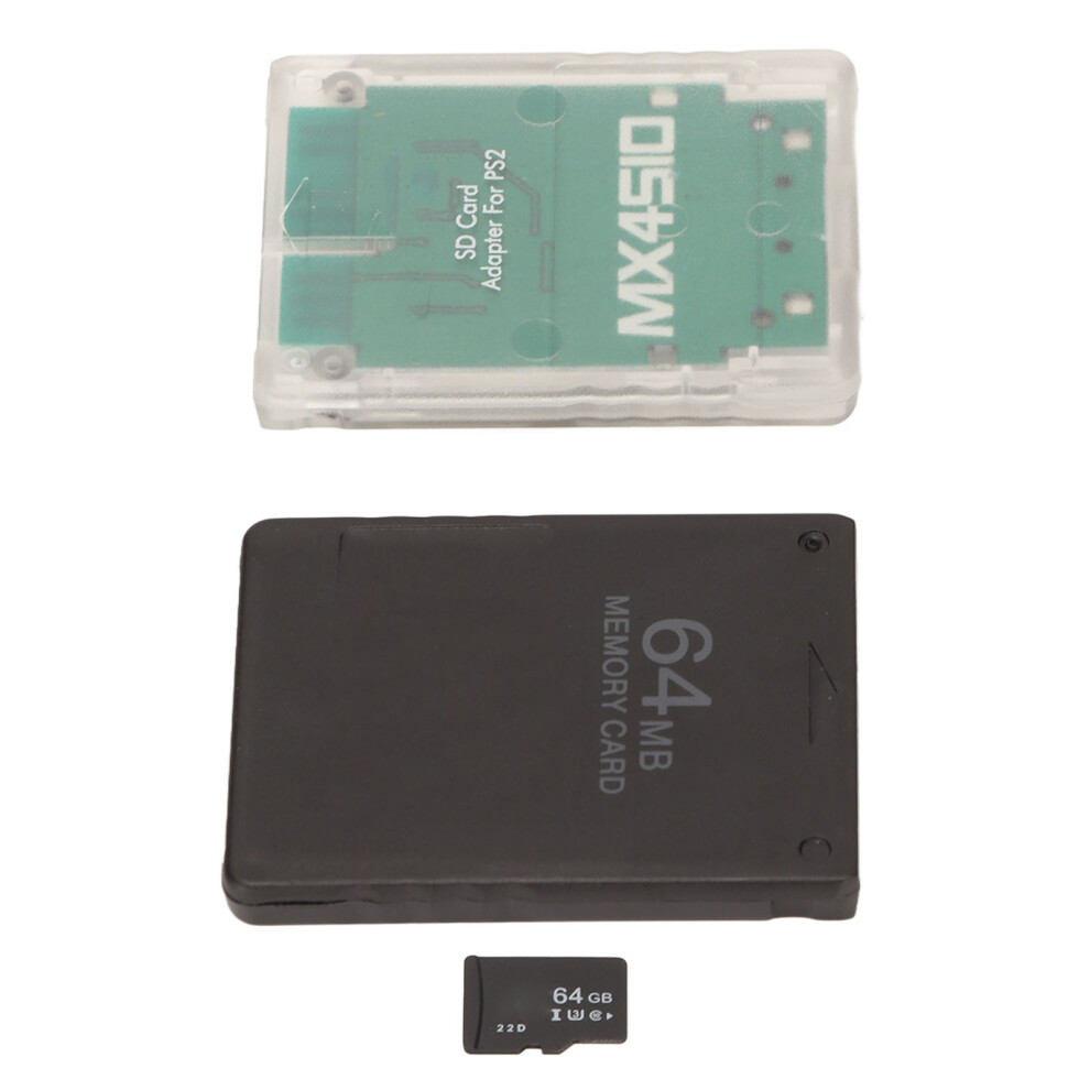 Memory Card Reader Stable Replacement Memory Card Adapter with 64G Memory Card and FMCB 64MB Game Card for PS2 Slim