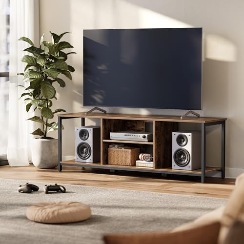 VASAGLE TV Stand for TV up to 65 Inches, TV Cabinet with Open Shelves, TV Console for Living Room, Entertainment Room, Rustic Brown and Ink Black LTV061K01