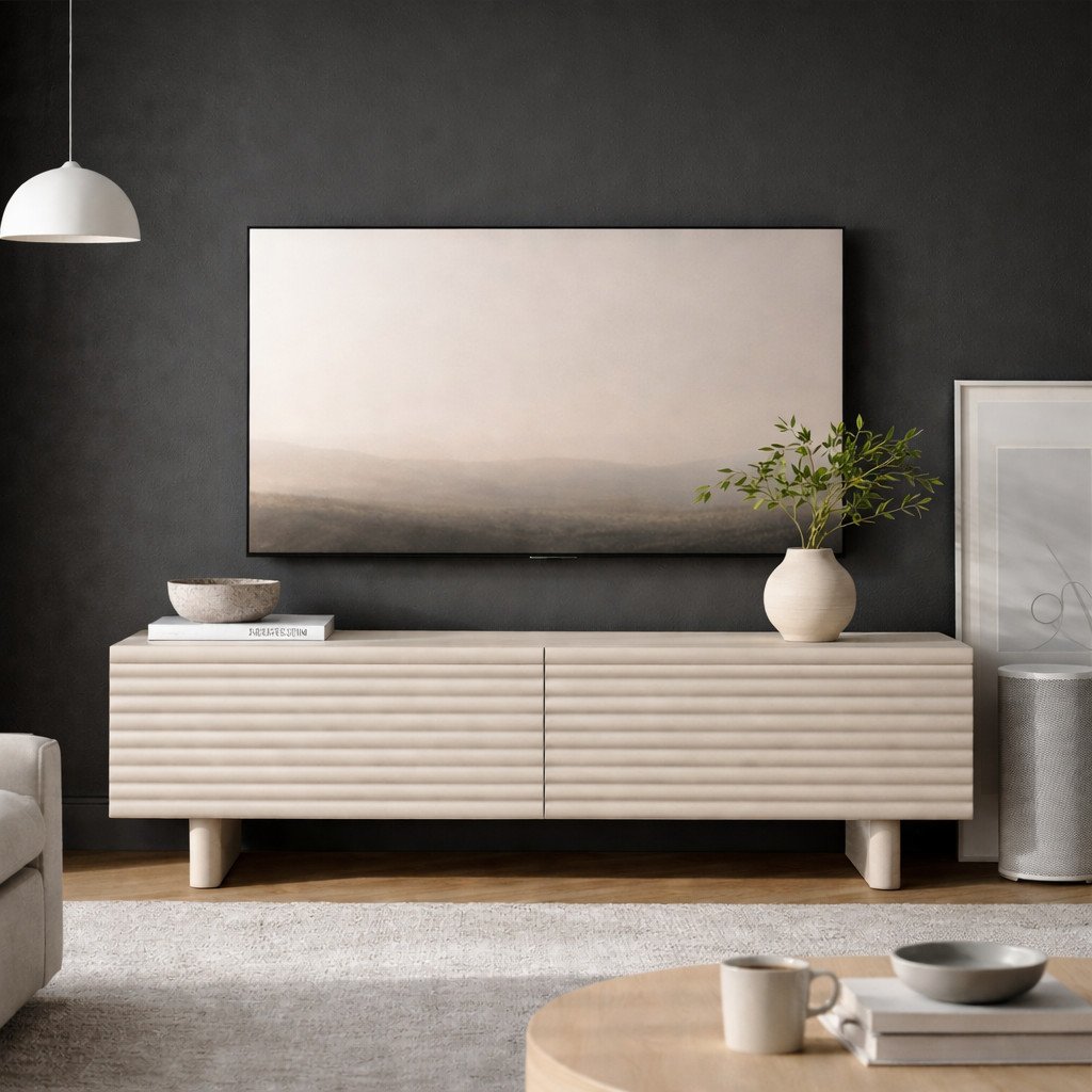 TV Unit Cabinet Beige 65" TV Stand 150cm Storage Ribbed Fluted Cashmere Toyo