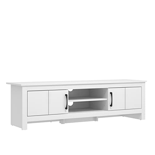 WLIVE TV Stand Cabinet for TV Up to 65 inch, TV Unit with Open Shelf and 2 Cabinets, 147 x 37 x 45 cm, Wooden TV Unit for Living Room, Bedroom, Entertainment Room, White