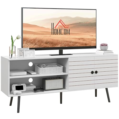 HOMCOM TV Stand Cabinet for 65 Inch TVs, TV Unit with Open Shelves, Soft-close Door and Cable Holes, Entertainment Unit for Living Room, White