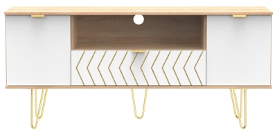 Jigsaw White and Oak Effect 65cm TV Unit with Gold Hairpin Legs