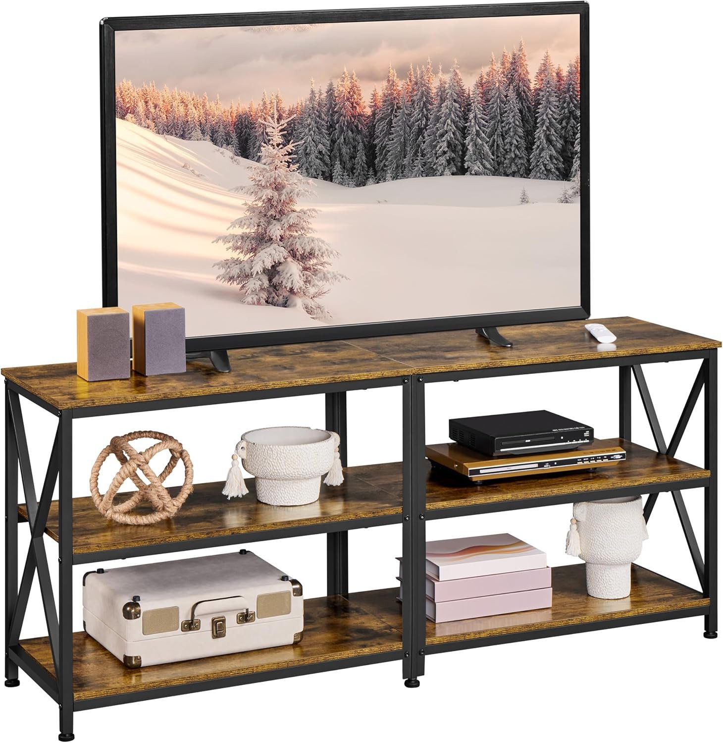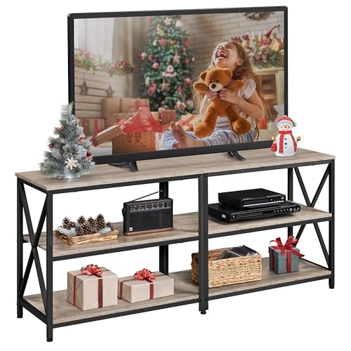 Multigot TV Stand for TVs up to 65 Inches, Industrial TV Unit Console Table with Open Storage Shelves, Metal Frame Wooden Television Cabinet Media Entertainment Center for Living Room Bedroom